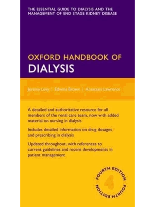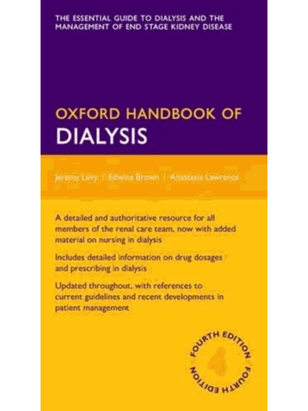 The Oxford Handbook of Dialysis is a comprehensive and practical guide to all aspects of dialysis, the management of patients with end stage kidney disease, and all its complications. The fourth edition has been completely updated, and covers all aspects of dialysis from haemodialysis techniques and haemodiafitration, to the medical, nursing and psychosocial aspects of managing patients with end stage kidney failure.